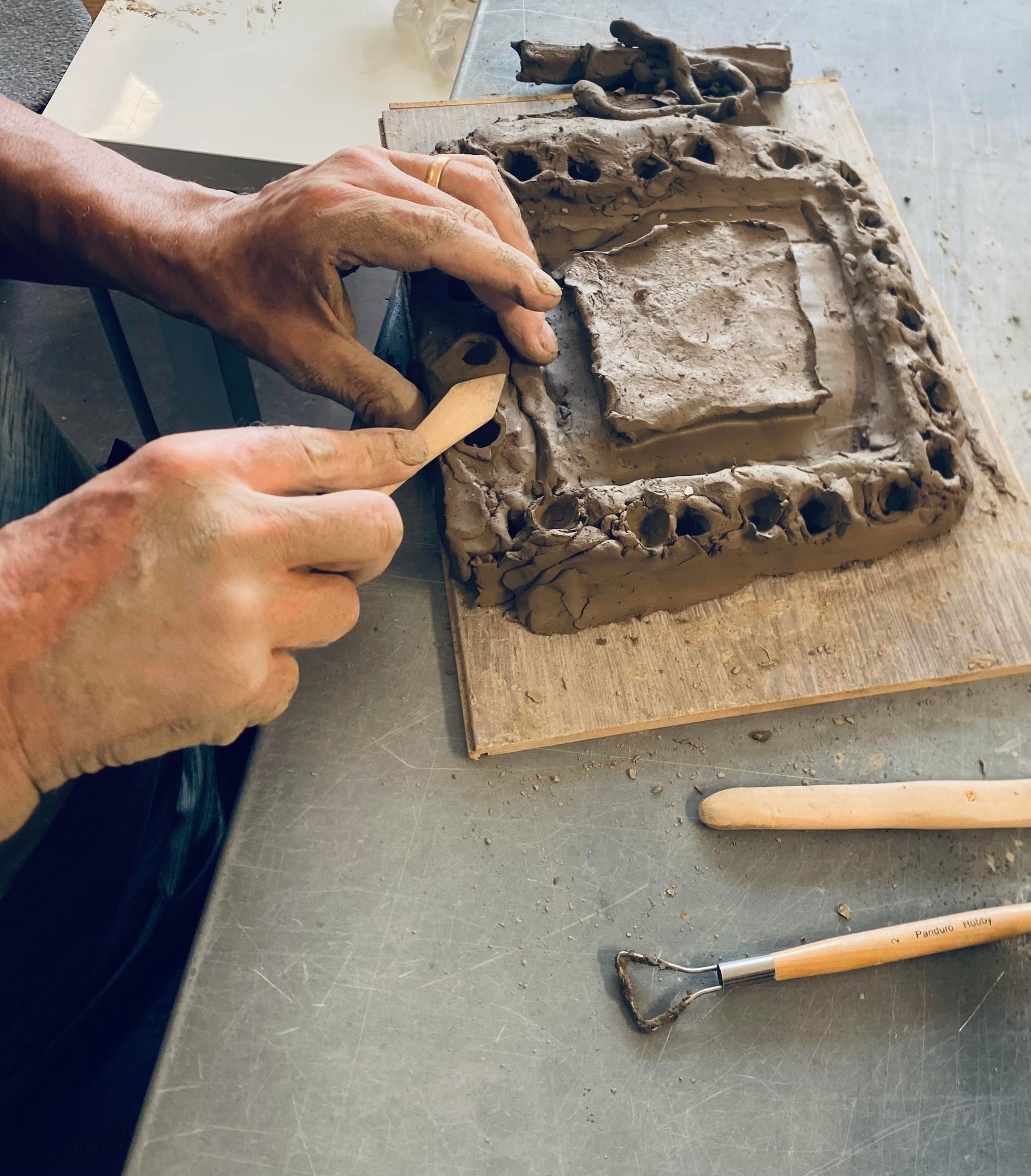 Working with glass and clay.