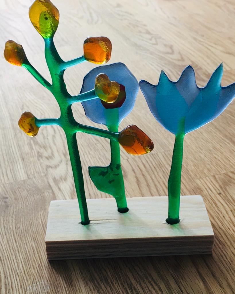 Glass fusing; work with coloured sheet glass. Cut, break and sand it to get the desired shapes, which will then go into the kiln to become a whole. Create a piece of your design with your own hands, of course with my assistance if need be!